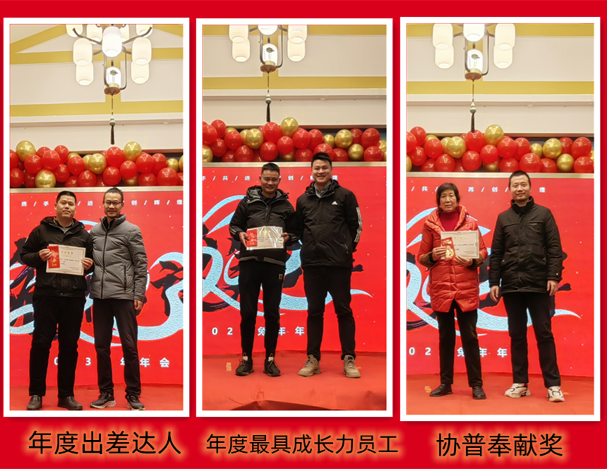 趙總致辭后,公司為2022年度表現(xiàn)優(yōu)異的團(tuán)隊(duì)和個(gè)人進(jìn)行了表彰。人才是公司生存和發(fā)展之本。公司發(fā)展的每一步都離不開每個(gè)協(xié)普人的努力和付出。本年度公司共評(píng)選出三名優(yōu)秀員工——陶?;?、楊剛、徐金鳳,“2022年度突出貢獻(xiàn)獎(jiǎng)”——張傳東、桂佳俊,“2022年度敬業(yè)獎(jiǎng)”——陳阿龍,“年度宣傳小能手”——宋玉秋;“協(xié)普年度出差達(dá)人”——胡金龍,“年度最具成長(zhǎng)力員工”——王傳銀,“5S進(jìn)步團(tuán)體”——技術(shù)部、車間鉚焊班,“質(zhì)量進(jìn)步團(tuán)體”——質(zhì)量部,“協(xié)普奉獻(xiàn)獎(jiǎng)”——?jiǎng)⑼ビ瘛?/span>