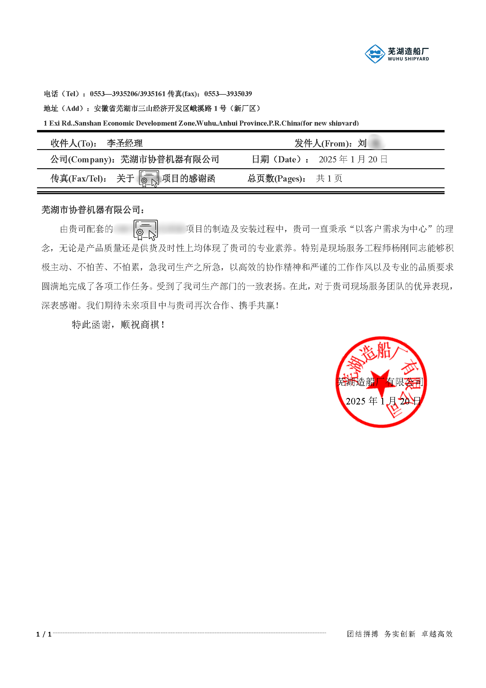 2025年,協(xié)普在給蕪湖船廠(chǎng)配套項(xiàng)目的制造及安裝過(guò)程中,一直秉承“以客戶(hù)需求為中心”的理念,無(wú)論是產(chǎn)品質(zhì)量、還是供貨及時(shí)性以及現(xiàn)場(chǎng)的服務(wù)均受到了蕪湖造船廠(chǎng)的高度認(rèn)可。協(xié)普?qǐng)F(tuán)隊(duì),以高效的協(xié)作精神和嚴(yán)謹(jǐn)?shù)墓ぷ髯黠L(fēng)以及專(zhuān)業(yè)的品質(zhì)要求圓滿(mǎn)地完成了各項(xiàng)工作任務(wù)。受到了蕪湖造船廠(chǎng)生產(chǎn)部門(mén)的一致表?yè)P(yáng)。