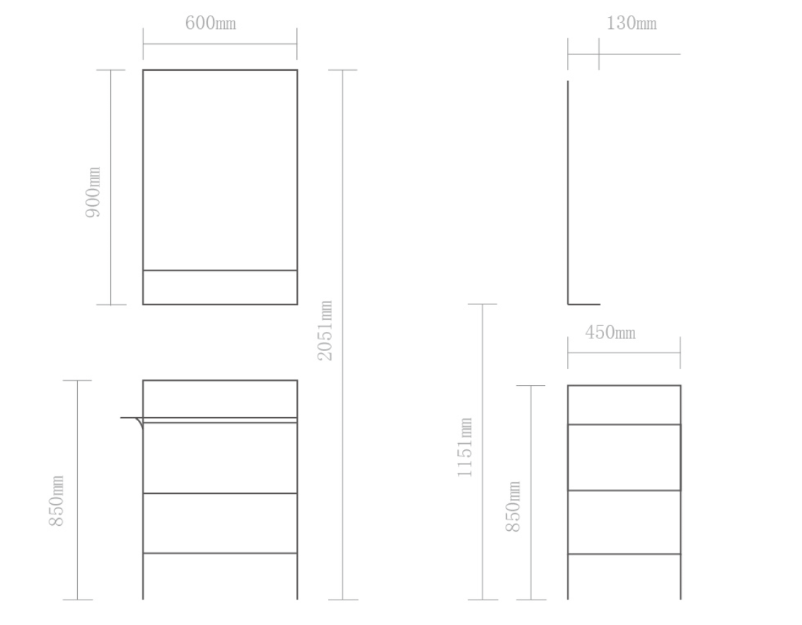 尺寸:化妝鏡 600x900x130 (mm) + 浴室柜 600x450x850 (mm)